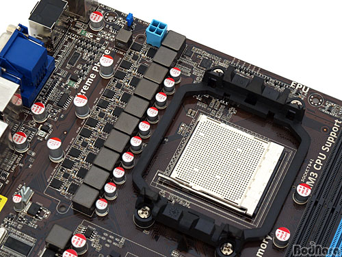 Phase Àü¿øºÎ ±¸¼ºÀ» ÅëÇØ ÃÖ´ë 140W TDP CPU¸¦ Áö¿øÇÒ ¼ö ÀÖ´Ù. ¼ÒÄÏ ¹æ½ÄÀº AM3·Î AM3 ±â¹Ý CPU¸¸ ÀåÂø °¡´ÉÇϰí AM2/ AM2+