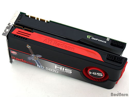 Radeon HD 5870Àº Ãâ·ÂÆ÷Æ®ºÎÅÍ Ä𸵠¼Ö·ç¼ÇÀ» Æ÷ÇÔÇÑ ±æÀ̰¡ 28.5cm·Î ÇÔ²² ºñ±³ÇÑ GeForce GTX 275ÀÇ 27.5cmº¸´Ù 1cm °¡·® ±æ¾úÀ¸³ª, ½ÇÁ¦ PCB ±æÀÌ´Â 27cm Á¤µµ·Î µÎ Á¦Ç°ÀÇ PCB ±æÀÌ´Â Â÷À̰¡ ¾ø´Ù. HD 5870Àº Ä𸵠¼Ö·ç¼ÇÀÇ Å©±â°¡ ´õ Ä¿Áø °ÍÀÌ´Ù.