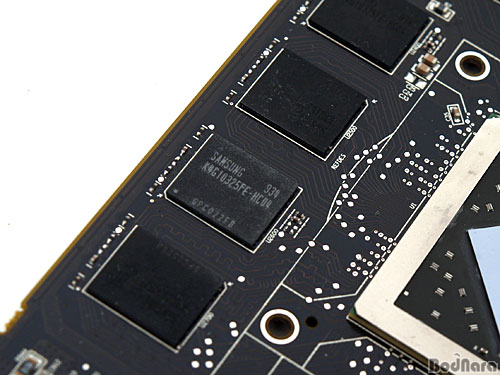 [SAMSUNG GDD5 1024MB ÀåÂø, K4G10325FE-HC04 1Gb (32Mb x 32)] HD 5870¿¡ ÀåÂøµÈ ¸Þ¸ð¸®´Â »ï¼ºÀÇ GDDR5 ¸Þ¸ð¸®·Î 1.5VÀÇ Àü¾Ð°ú 5000 (1250)MH±îÁö µ¿ÀÛ °¡´ÉÇÑ ¸Þ¸ð¸®´Ù. Àü¸é¿¡¸¸ ¸ðµÎ 8°³ÀÇ ¸Þ¸ð¸®°¡ ÀåÂøµÇ¸ç, Àû¿ëµÈ Ŭ·°Àº 4800 (1200)MHz·Î 256bit ¸Þ¸ð¸® ÀÎÅÍÆäÀ̽º¸¦ ±¸¼ºÇÏ¿© 153.6GB/sÀÇ ¸Þ¸ð¸® ´ë¿ªÆøÀ» Á¦°øÇÑ´Ù. ±âÁ¸ HD 4870/ HD 4890°ú ´Þ¸® GDDR5´Â ½ºÀ§Äª ±â´ÉÀ» ÅëÇØ ¾ÆÀ̵é½Ã Ŭ·°ÀÌ Å©°Ô ³·¾ÆÁ® ¾ÆÀ̵é½Ã ¼ÒºñÀü·ÂÀÌ 27W·Î ±âÁ¸º¸´Ù Å©°Ô ³·¾ÆÁ³´Ù. µà¾ó GPUÀÎ HD 4870 X2¿Í GeForce GTX 295ÀÇ 230.4GB/s¿Í 224GB/sº¸´Ù ¸Þ¸ð¸® ´ë¿ªÆøÀÌ Å©°Ô ³ôÁö ¾Ê¾Æ Crysis µî°ú °°Àº ÀϺΠ°íÇØ»óµµ ¼³Á¤¿¡¼ HD 5870ÀÇ ¼º´ÉÀÌ ³·¾ÆÁú °ÍÀ¸·Î ¿¹»óµÈ´Ù.   ºí·¢ PCB¸¦ »ç¿ëÇÑ HD 5870
