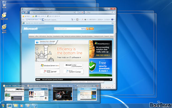°¡Àå ¸ÕÀú »ìÆìº¼ °ÍÀÌ ¹Ù·Î À©µµ¿ì 7ÀÇ ÀÛ¾÷ Ç¥½ÃÁÙÀÌ´Ù. ÀÛ¾÷ Ç¥½ÃÁÙ(Task Bar)¶ó´Â ¸íĪ ´ë½Å MS¿¡¼ ¼öÆÛ ¹Ù(Superbar)¶ó´Â »õ·Î¿î À̸§À» ºÙ¿´À» Á¤µµ·Î ÀÛ¾÷ Ç¥½ÃÁÙ°ú ÀÛ¾÷ Ç¥½ÃÁÙ ´ÜÃß¿¡ µé¾î°¡´Â ±â´ÉÀÌ Å©°Ô °ÈµÇ¾î À©µµ¿ì ºñ½ºÅ¸¿¡¼ ¼±º¸¿´´ø ¿¡¾î·Î(Aero) ÀÎÅÍÆäÀ̽º, Çø³ 3D(Filp 3D) ¸¸ÅÀ̳ª ÀλóÀûÀÌ¸é¼ È°¿ë¼ºÀº ±×º¸´Ù ´õ ³ô´Ù.