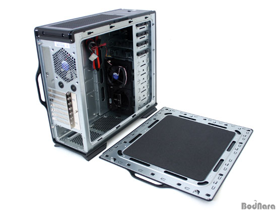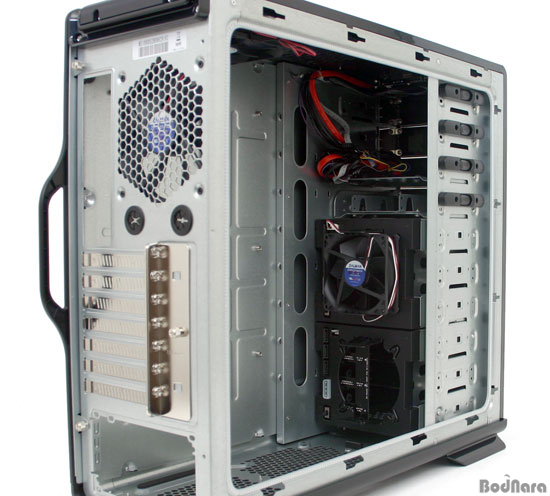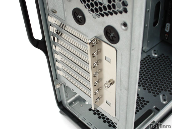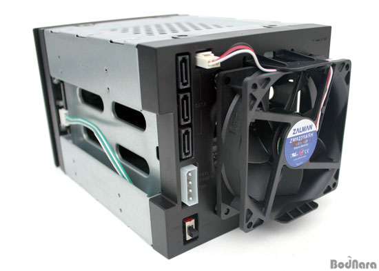 HDDÀÇ ÀåÂøÀ» À§ÇÑ º£ÀÌ´Â ÄÉÀ̽º¿ÍÀÇ °íÁ¤À» À§ÇÑ 4°³ÀÇ º¼Æ®¸¦ Á¦°ÅÇÏ¸é ºÐ¸®°¡ °¡´ÉÇϸç, 3°³ÀÇ SATAÄ¿³ØÅÍ¿Í Àü¿øÄ¿³ØÅÍ, ±×¸®°í ³Ã°¢ÆÒÀÇ ½ºÇǵ带 LOW/HIGHÀÇ µÎ´Ü°è·Î Á¶ÀýÇϱâ À§ÇÑ ½ºÀ§Ä¡°¡ ÀåÂøµÇ¾î ÀÖ´Ù.