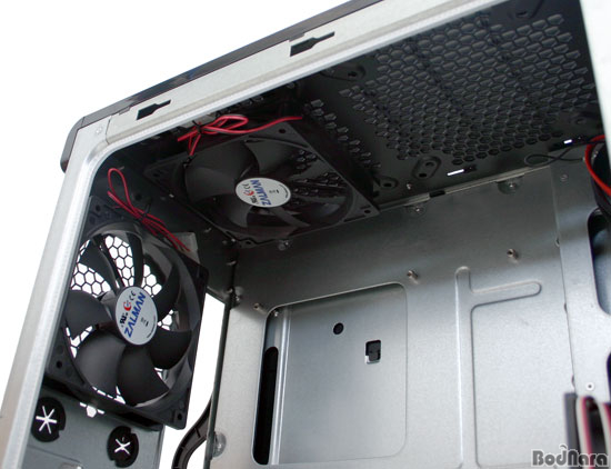 ÄÉÀ̽º »ó´Ü¿¡´Â ³»ºÎ °ø±â¸¦ ¹ÛÀ¸·Î ¹èÃâÇϱâ À§ÇÑ ¿¡¾îȦ°ú 120mm Äð¸µÆÒÀÌ 1°³ ÀåÂøµÇ¾î ÀÖÀ¸¸ç, Äð¸µÆÒÀ» Ãß°¡·Î ÀåÂøÇϱâ À§ÇÑ °ø°£ÀÌ ÁغñµÇ¾î ÀÖ´Ù. »ó´Ü¿¡ ÀåÂø °¡´ÉÇÑ Äð¸µÆÒÀº 120mm/140mmÄð¸µÆÒÀ̸ç, »ó´Ü¿¡ Äð¸µÆÒÀ» ÀåÂøÇϱâ À§Çؼ´Â »ó´ÜÀÇ Ä¿¹ö¸¦ Á¦°ÅÈÄ ÆúÆ®·Î °íÁ¤ÇØ¾ß ÇÑ´Ù.