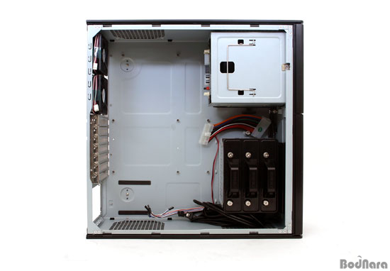 HD503ÀÇ ³»ºÎ´Â ÀüüÀûÀ¸·Î´Â ÀÏ¹Ý PCÄÉÀ̽º¿Í Å« Â÷À̸¦ º¸ÀÌÁö ¾Ê´Â ºÎºÐÀÌÁö¸¸, ±âÁ¸ÀÇ À߸¸¿¡¼ Ãâ½ÃÇÏ¿´´ø Á¦Ç°µé¸¸ÅÀ̳ª¸¶ Ä𸵿¡ ½Å°æÀ» ¾´ ¸ð½ÀÀ» ÇÑ´«¿¡ ¿³º¼¼ö ÀÖ´Ù.     Á¦Ç°ÀÇ ³»ºÎ¿¡´Â ¸ÞÀκ¸µåÀÇ ¼³Ä¡¸¦ À§ÇÑ °íÁ¤³ª»ç°¡ 9°³°¡ ÀåÂøµÇ¾î ÀÖÀ¸¸ç, ÇÖ ½º¾Ð¹æ½ÄÀÇ HDD ÀåÂøº£ÀÌ¿Í, ODDÀÇ ¼³Ä¡¸¦ À§ÇÑ º£À̰¡ ¿ìÃø »ó´Ü¿¡ À§Ä¡Çϰí, ¿ìÃø ÇÏ´Ü¿¡ ³»ºÎ HDD¸¦ ÀåÂøÇϱâ À§ÇÑ 3°³ÀÇ º£À̰¡ Ãß°¡·Î ±¸¼ºµÇ¾î ÀÖ´Ù. ¶ÇÇÑ ÁÂÃø ÇÏ´Ü¿¡´Â ÆÄ¿ö¼ÇöóÀÌÀÇ ¼³Ä¡¸¦ À§ÇÑ °ø°£¿¡ ¸¶·ÃµÇ¾î ÀÖÀ¸¸ç, ÆÄ¿ö¼ÇöóÀÌÀÇ ¼³Ä¡ Àå¼Ò¿¡ ¿¡¾îȦÀ» Á¦°øÇÔÀ¸·Î¼ ÆÄ¿ö¼ÇöóÀÌ¿¡¼ ¹ß»ýÇÏ´Â ¿À» ¹èÃâÇÒ ¼ö ÀÖ°Ô ÇÏ¿´´Ù.     HDD ¹× ODDÀÇ ÀåÂø º£ÀÌ¿Í ³»ºÎ HDD ÀåÂø °ø°£Àº µ¶¸³ÀûÀ¸·Î ±¸¼ºµÇ¾î ³ª»ç·Î º»Ã¼¿¡ °íÁ¤µÇ¾î ÀÖ´Â ¹æ½ÄÀ¸·Î ¼³°èµÇ¾î ÀÖ´Ù.