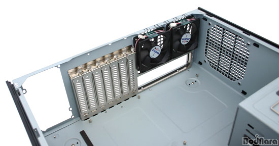 Á¦Ç°ÀÇ Èĸ鿡´Â 80mm³Ã°¢ÆÒ µÎ°³¿Í PCIÀåÄ¡ÀÇ ÀåÂøÀ» À§ÇÑ 7°³ÀÇ PCI°¡À̵尡 À§Ä¡Çϰí ÀÖÀ½À» È®ÀÎÇÒ ¼ö ÀÖ´Ù. °¢°¢ÀÇ PCI°¡À̵å´Â Çڵ彺ũ·ù·Î °íÁ¤µÇ¾î ÀÖÀ¸¸ç, ½Ç¹öÀÇ »ö»óÀ» °¡Áö°í¼ »ç¿ëÀÚÀÇ »óȲ¿¡ µû¶ó¼ Á¦°Å ¹× ÀçȰ¿ëÀÌ °¡´ÉÇÑ ±¸Á¶·Î ¼³°èµÇ¾î ÀÖ´Ù.