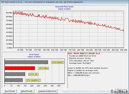 HD Tach Å×½ºÆ® °á°ú Æò±Õ Àü¼Û ¼Óµµ´Â 320GB Ç÷¡Å͸¦ »ç¿ëÇÑ WD ½ºÄÝÇÇ¿À ºí·ç 640GB°¡ 250GB Ç÷¡Å͸¦ »ç¿ëÇÑ WD ½ºÄÝÇÇ¿À ºí·ç 750GB¿¡ ºñÇØ ¾à 7MB/s Á¤µµ ºü¸¥ °ÍÀ¸·Î ³ªÅ¸³ª Å« Â÷ÀÌ´Â ¾ø´Â °ÍÀ¸·Î È®ÀεǾú´Ù.