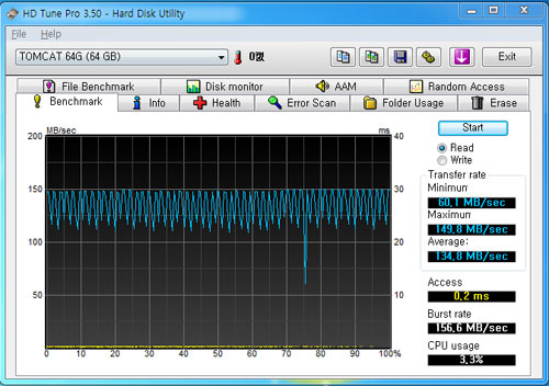 À§ÀÇ °á°ú´Â Marvell Controller¸¦ ÀåÂøÇÑ Tomcat 64GB SSD¸¦ ±â°¡¹ÙÀÌÆ® P55A-UD3R¿¡¼­ C-State ¿É¼ÇÀ» Disabled¿Í EnabledÇÑ »óÅ¿¡¼­ ÃøÁ¤ÇѰÍÀÌ´Ù. Disabled½Ã¿¡´Â Max 149MB/s, Ave 138MB/s°¡ ÃøÁ¤µÇ¾úÁö¸¸, Enabled½Ã¿¡´Â Max 118.5MB/s, Ave 96.3MB/s°¡ ÃøÁ¤µÇ¾î ¾à 20%°¡·® ¼º´ÉÀÌ ¶³¾îÁø°ÍÀ¸·Î ³ªÅ¸³µ´Ù.