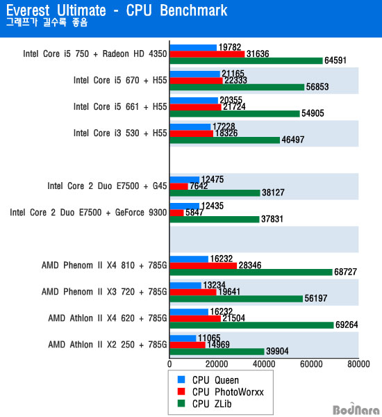 AMD Æä³Ñ II, ¾Ö½½·Ð II ½Ã¸®ÁîÀÇ °æ¿ì CPU ZLib ÃøÁ¤ °á°ú´Â Äõµå ÄÚ¾î ±âÁØÀ¸·Î ÀÎÅÚ ¸°Çʵå ÄÚ¾î i5-750º¸´Ù ³ô¾ÒÁö¸¸ ³ª¸ÓÁö´Â ¶³¾îÁö´Â °ÍÀ¸·Î ³ª¿Ô´Ù. Ŭ¶ôµ¥ÀÏ °è¿­ÀÇ µ¿ÀÛ Å¬·°ÀÌ ´õ ³ô¾Ò±â ¶§¹®¿¡ ½ÇÁ¦·Î´Â ÄÚ¾î i3-530°ú ÄÚ¾î 2 µà¿À E7500, ¾Ö½½·Ð II X2 250À» ±âÁØÀ¸·Î º»´Ù¸é ÄÚ¾î i3-530 > ¾Ö½½·Ð II X2 250 > ÄÚ¾î 2 µà¿À E7500 ¼øÀ¸·Î ³ª¿Â´Ù.