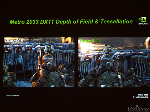 ÃÖ±Ù °ø°³µÈ Metro 2033Àº DirectX 11 Áö¿ø ¹× DirectX 11ÀÇ Æ¯Â¡µéÀ» Ȱ¿ëÇϰí ÀÖ´Â °ÔÀÓÀ¸·Î ¾Ë·ÁÁ® ÀÖÀ¸¸ç, DoF (Depth of Field)¿Í Å×¼¿·¹ÀÌ¼Ç Àû¿ëÀ» ÅëÇØ DirectX 9 ȯ°æ¿¡¼ Çâ»óµÈ ±¤¿ø È¿°ú¸¦ ºñ·ÔÇÏ¿© ´Ù°¢Çü ¹°Ã¼¸¦ ½Ç»ç¿¡ °¡±õµµ·Ï µÕ±Û°Ô Ç¥ÇöÇÏ´Â µî °ÔÀÓ¿¡¼µµ Å×¼¿·¹À̼ÇÀ» ºñ·ÔÇÑ DirectX 11ÀÇ ±×·¡ÇÈÈ¿°ú´Â À¯¿ëÇÏ°Ô »ç¿ëµÉ ¼ö ÀÖ´Ù.