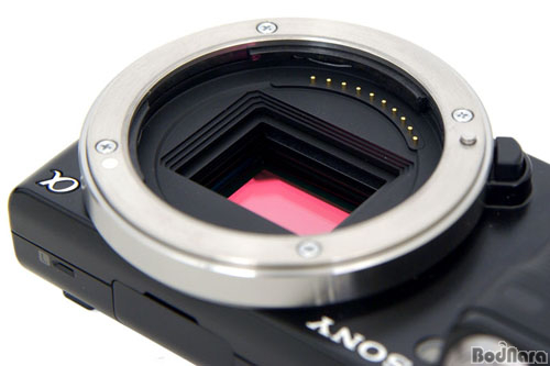 DSLR Ä«¸Þ¶ó¿¡´Â ±âº»ÀûÀ¸·Î µé¾î°¡´ø ºäÆÄÀδõ ¹Ì·¯ ½Ã½ºÅÛÀÌ »ç¶óÁö¸é¼ NEX-5ÀÇ Ç÷¹ÀÎÁö ¹é ±æÀÌ´Â 18mm·Î ¸Å¿ì ª¾ÆÁ³´Ù. »õ·Ó°Ô ¹Ù²ï Ç÷¹ÀÎÁö ¹éÀ» À§ÇØ ¼Ò´Ï´Â ¹Ì·¯¸®½º °è¿¿¡ ±âÁ¸ÀÇ DSLR¿ë ¾ËÆÄ ¸¶¿îÆ® ´ë½Å Àü¿ë E-¸¶¿îÆ®¸¦ ¸¸µé¾ú´Ù.