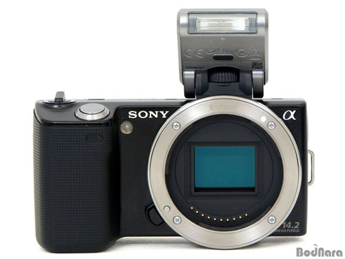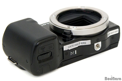 SONY ·Î°í ¾Æ·¡¿¡´Â AF º¸Á¶±¤ ·¥ÇÁ°¡ ´Þ·ÁÀÖÀ¸¸ç, ±×¸³ºÎ¿¡´Â ¹«¼±¸®¸ðÄÜ ¼ö½ÅºÎ°¡ º¸ÀδÙ. ÇÏÀ§ ¸ðµ¨ÀÎ NEX-3ÀÇ °æ¿ì ¹«¼±¸®¸ðÄÜ ¼ö½Å ±â´ÉÀÌ ºüÁ³±â ¶§¹®¿¡ ±×¸³ºÎ¿¡ ¼ö½ÅºÎ°¡ º¸ÀÌÁö ¾Ê´Â´Ù.
