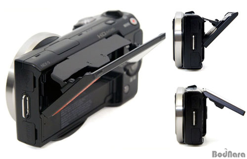 NEX ½Ã¸®Áî´Â ¼Ò´Ï ¾ËÆÄ DSLR ÀϺΠÁ¦Ç°¿¡ µé¾î°¬´ø °Íó·³ ¾×Á¤ È¸é Æ¿Æ® ±â´ÉÀÌ µé¾î°¬´Ù. »ó´Ü 80µµ, ÇÏ´Ü 45µµÀÇ Æ¿Æ® µ¿ÀÛÀÌ °¡´ÉÇØ ´Ù¾çÇÑ ¾Þ±Û¿¡¼ »çÁøÀ» ÂïÀ» ¼ö ÀÖ´Ù. ÇÏÁö¸¸ ¾×Á¤ ȸÀü °¢µµ°¡ Ä«¸Þ¶ó Á¤¸é¿¡¼ º¼ ¼ö ÀÖ´Â Á¤µµ±îÁö´Â ¾Æ´Ï¶ó¼ ¼¿Ä«(¼¿ÇÁ Ä«¸Þ¶ó) ÃÔ¿µ¿ëÀ¸·Î´Â ¾²Áö ¸øÇÑ´Ù.