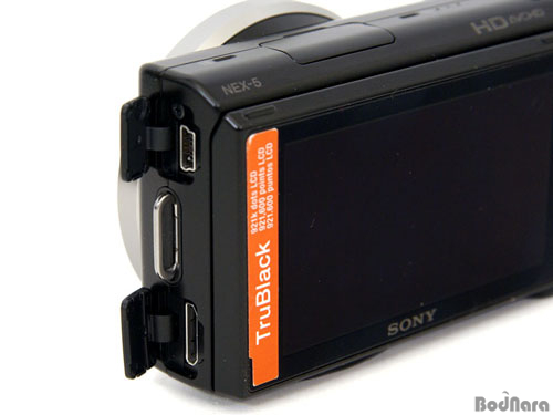NEX-5ÀÇ Ãø¸é¿¡´Â USB 2.0 Æ÷Æ®¿Í ¹Ì´Ï HDMI Æ÷Æ®(Type C)°¡ ¸¶·ÃµÇ¾î ÀÖ´Ù. 2°³ÀÇ Æ÷Æ®´Â º°µµÀÇ Ä¿¹ö¸¦ »ç¿ëÇØ ÇÊ¿äÇÑ Æ÷Æ®¸¸ ¿°í ¾µ ¼ö ÀÖÀ¸¸ç HDMI ¿¬°á·Î ¼Ò´Ï ºê¶óºñ¾Æ(Bravia) TV¿¡ ¿¬°áÇÏ¸é ºê¶óºñ¾Æ ½ÌÅ©(Sync) ¹× Æ÷ÅäTV HD ±â´ÉÀ» ÅëÇØ¼ °íÇØ»óµµ »çÁø ¹× µ¿¿µ»óÀ» °¨»óÇÒ ¼ö ÀÖ´Ù.