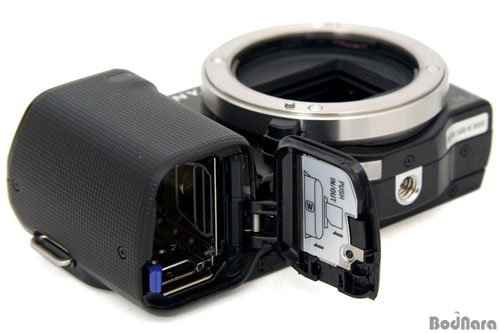 NEX-5 Áß¿¡ °¡Àå µÎ²¨¿î ±×¸³ ºÎºÐÀ» ÀÌ¿ëÇÑ ¹èÅ͸®¿Í ¸Þ¸ð¸® ¼ö³³Àº Ä¿¹ö Çϳª¸¦ ÀÌ¿ëÇØ ÀÌ·ïÁö±â ¶§¹®¿¡ ¸Þ¸ð¸®¸¦ ±³È¯ÇÏ´õ¶óµµ ¹èÅ͸®°¡ ºüÁöÁö ¾Êµµ·Ï °íÁ¤ ½ºÀ§Ä¡°¡ ÀÖÀ¸¸ç Ä¿¹ö°¡ ¿¸®´õ¶óµµ Ä«¸Þ¶ó°¡ ²¨ÁöÁö ¾Êµµ·Ï Ä¿¹ö ÂÊ¿¡ Àü¿ø ȸ·Î°¡ Á¸ÀçÇÏÁö ¾Ê´Â´Ù.