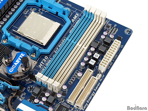 ¸Þ¸ð¸® ½½·ÔÀº ÃÑ 4°³¸¦ Á¦°øÇÏ¿© ÃÖ´ë 16GBÀÇ DDR3 SDRAMÀ» Áö¿øÇÒ ¼ö ÀÖÀ¸¸ç, Áö¿ø °¡´ÉÇÑ ¸Þ¸ð¸® Ŭ·°Àº DDR3-1066/ 1333MHz Áö¿ø ¹× ¿À¹öŬ·°À» ÅëÇØ 1866MHzÀÇ Å¬·°µµ Àû¿ë °¡´ÉÇÏ´Ù. ¸Þ¸ð¸®´Â °°Àº »ö»ó¿¡ °°Àº ½ºÆåÀÇ ¸Þ¸ð¸®¸¦ ÀåÂøÇÏ¸é µà¾óä³Î·Î µ¿À۵ȴÙ. ¸Þ¸ð¸® ¿ìÃøÀ¸·Î´Â Àü¿ø ¿Â ¹× ¸®¼Â ¹öưÀÌ À§Ä¡Çϰí ÀÖ´Ù.