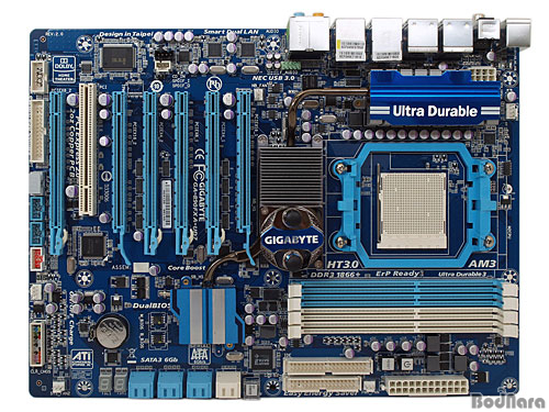 ±â°¡¹ÙÀÌÆ® (GIGABYTE) GA-890FXA-UD7 (ÀÌÇÏ, 890FXA-UD7) ¸ÞÀκ¸µå´Â ¾ÆÁ÷ Ç¥ÁØÈµÇÁö ¾ÊÀº ÆûÆÑÅÍÀÎ XL-ATX ±Ô°ÝÀ» »ç¿ëÇÏ´Â ¸ÞÀκ¸µå·Î AMDÀÇ ÃֽŠĨ¼ÂÀÎ 890FX + SB850ÀÌ Á¶Çյǰí ÀÖ´Ù. ÀÌ¿¡ µû¶ó ³×ÀÌÆ¼ºê SATA3 (6Gbps)¸¦ Áö¿øÇϸç, 6°³ÀÇ PCI-Express x16 2.0 ÇüÅÂÀÇ ½½·ÔÀ» Á¦°øÇØ ÃÖ´ë 4-Way CrossFire X¸¦ ±¸¼ºÇÒ ¼ö ÀÖ´Ù.