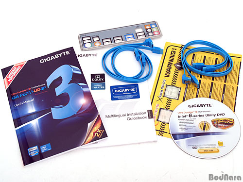 »ùÇÿ¡ Á¦°øµÈ ºÎ¼Ó¹°Àº »ç¿ëÀÚ ¸Å´º¾ó 1ºÎ¿Í ¸ÖƼ·©±ÍÁö ÀνºÅç °¡À̵åºÏ 1ºÎ, Àü¿ë I/O ½¯µå, CPU ¼ÒÄÏ ¼³Ä¡ ÁÖÀÇ °¡À̵å 1Àå, Dolby Home Theater ·Î°í ½ºÆ¼Ä¿¿Í GIGABYTE ·Î°í ½ºÆ¼Ä¿, µå¶óÀ̹ö ¹× À¯Æ¿¸®Æ¼ DVD 1Àå, SATA ÄÉÀ̺í 4°³°¡ Á¦°øµÈ´Ù.