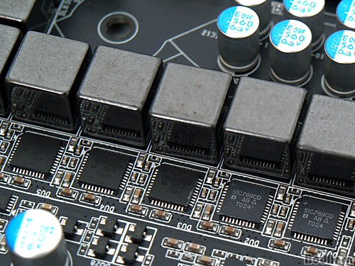 Àü¿øºÎ´Â CPU 12ÆäÀÌÁî¿Í ¸Þ¸ð¸®/ QPI¸¦ À§ÇÑ 2ÆäÀÌÁî·Î intersil ISL6366 PWM ÄÁÆ®·Ñ·¯¿Í DrMOS ¼ÒÀÚ¸¦ Á¶ÇÕÇØ ±¸¼ºÇÑ´Ù. »ç¿ëµÈ PWM ÄÁÆ®·Ñ·¯´Â »÷µðºê¸´Áö (Sandy Bridge) Áö¿øÀ» À§ÇÑ ÀÎÅÚ VRD12¸¦ ºñ·ÔÇÏ¿© VR11.1/ VR10/ VR11ÀÇ Àü¿øºÎ ±Ô°Ý°ú ȣȯµÈ´Ù. Ä𸵠¼Ö·ç¼ÇÀº È÷Æ®ÆÄÀÌÇÁ¸¦ Æ÷ÇÔÇÏ¿© Àü¿øºÎ¸¦ ±¸¼ºÇÏ´Â DrMOS ¼ÒÀÚ¸¦ ¹æ¿Çϰí ÀÖ´Ù.