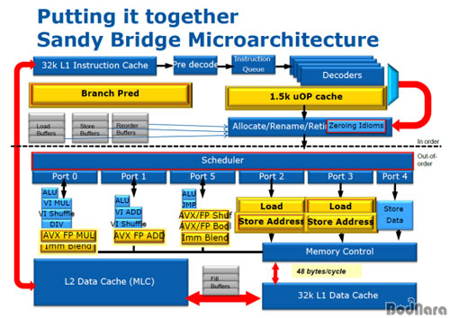 decoded micro-ops ij½¬¸¦ ¾à 6KB·Î ´Ã·Á µðÄÚ´õ È¿À² Áõ´ë¿Í µðÄÚµù ¼º´É ÀúÇϸ¦ ÁÙÀÌ°í µðÄÚ´õ¸¦ ·Îµå ¿ÀÇÁÇϵµ·Ï ÇÏ¿© CPU Àü·Â¼Ò¸ð¸¦ ÁÙÀÏ ¼ö ÀÖ´Ù. »÷µðºê¸´Áö´Â ¼º´É¿¡ ¿µÇâÀ» ÁÖ´Â ÀÌ ºÐ±â¿¹ÃøÀ¯´Ö (Branch Prediction Unit)À» È¿À²ÀûÀ¸·Î °ü¸®Çϵµ·Ï °³¼±ÇÏ°í ¹öÆÛ ÀúÀå Áõ´ë¸¦ ¹ÙÅÁÀ¸·Î ÀÌÀü ¼¼´ëº¸´Ù 5% ÀÌ»óÀ» °³¼±Çß´Ù.