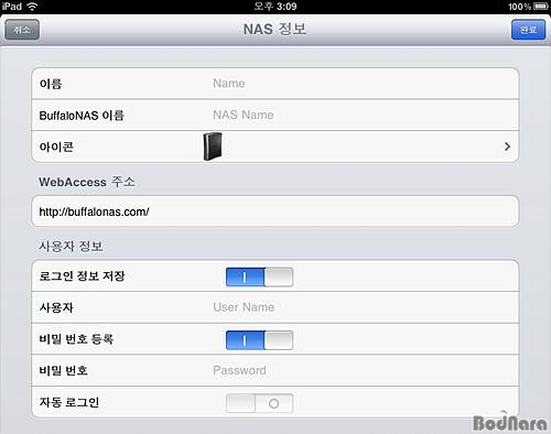 Apple ¾Û½ºÅä¾î¿¡¼ Buffalo¸¦ °Ë»öÇϸé WebAccess¿ë ¾ÛÀÌ iPAD¿ë°ú iPhone¿ëÀ¸·Î ³ª¿Â´Ù. iPAD¿ëÀº WebAccess HD¶ó´Â À̸§À¸·Î °íÇØ»óµµ¸¦ Áö¿øÇÏ´Â °ÍÀÌ Æ¯Â¡ÀÌ´Ù. ¹°·Ð ¹«·á·Î ¼³Ä¡°¡ °¡´ÉÇÏ¿© ¹öÆÈ·Î NAS À¯Àú¶ó¸é Ãß°¡ºñ¿ëÀÌ µéÁö ¾Ê´Â´Ù.