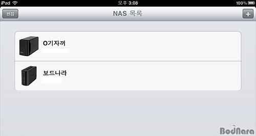 µî·ÏÀÌ ³¡³ª¸é ±×´ÙÀ½ºÎÅÍ ¾Û½ÇÇà Ãʱâ ȸ鿡 µî·ÏµÈ NASÀÇ ¸®½ºÆ®°¡ ¶ß°Ô µÈ´Ù. Á¢¼ÓÇϰíÀÚ ÇÏ´Â NAS¸¦ ÅÍÄ¡Çϱ⸸ ÇÏ¸é ¹Ù·Î NAS ¼Ó¿¡ ÀÖ´Â µ¥ÀÌÅ͸¦ »ç¿ëÇÒ ¼ö ÀÖ´Â °ÍÀÌ´Ù.