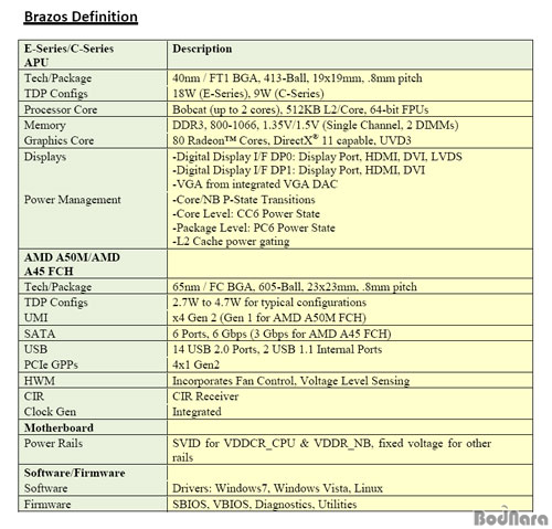 AMD ºê¶óÁ¶½º (Brazos) Ç÷§ÆûÀº ¿ïÆ®¶ó¾À ³ëÆ®ºÏ°ú ³ÝºÏ ½ÃÀåÀ» Ÿ°ÙÀ¸·Î ÇÏ´Â Ç÷§ÆûÀ¸·Î 40nm ±â¹ÝÀÇ ½Ì±Û ¹äĹ ÄÚ¾î¿Í ¶óµ¥¿Â HD 6250/ 6310 ³»Àå ±×·¡ÇÈÀÌ Æ÷ÇԵȴÙ.