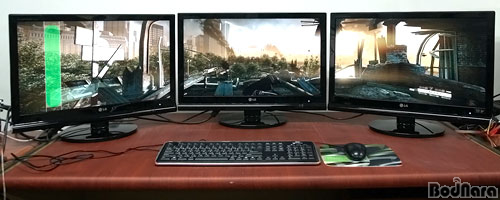 ¿£ºñµð¾Æ 3D ºñÀü ¼¶ó¿îµå´Â 3D ºñÀüÀÌ ÇϳªÀÇ ¸ð´ÏÅ͸¦ ÀÌ¿ëÇØ 3D ȯ°æÀ» ±¸ÃàÇß´Ù¸é, ´ÙÁ߸ð´ÏÅÍ (ÁöÆ÷½º´Â 3´ë ¸ð´ÏÅÍ Áö¿ø) ȯ°æÀ» ÀÌ¿ëÇØ 3D ȯ°æÀ» È®ÀåÇÏ´Â ±â¼úÀÌ´Ù. ÁöÆ÷½º GTX 590 ´ÜÀÏ Ä«µå·Î 3D ºñÀü ¼¶ó¿îµå ±¸ÃàÀÌ °¡´ÉÇÏ°í µà¾ó GPU·Î ÀÏ¹Ý °ÔÀÌ¹Ö È¯°æº¸´Ù ºÎÇϰ¡ Áõ°¡µÇ´Â ´ÙÁ߸ð´ÏÅÍ 3D °ÔÀÌ¹Ö È¯°æÀ» Áö¿øÇÒ ¼ö ÀÖ´Ù.