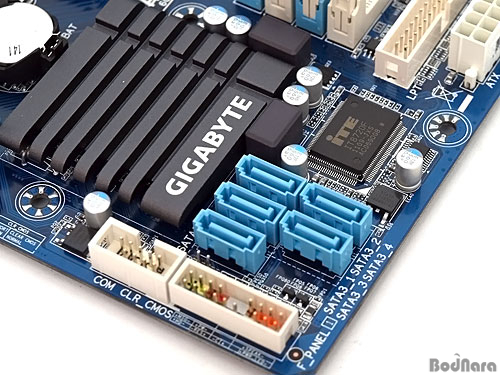 AMD A75 FCH´Â ³×ÀÌÆ¼ºê·Î ÃÑ 6°³ÀÇ SATA3 (6Gbps) Æ÷Æ®¸¦ Á¦°øÇϴµ¥ ÀÌ Á¦Ç°Àº ÃÑ 5°³´Â ¸ÞÀκ¸µå¿¡ ¹èÄ¡ÇØ ³õ°í ³ª¸ÓÁö Çϳª´Â ¹éÆÐ³Î¿¡ eSATA3 (6Gbps) Æ÷Æ®·Î Á¦°øÇÑ´Ù.