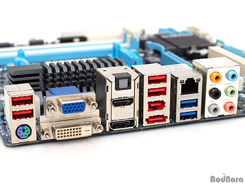 USB 2.0 4Æ÷Æ® (ºÓÀº»ö)¿Í Űº¸µå¿Í ¸¶¿ì½º¸¦ À§ÇÑ PS/2 Æ÷Æ®, Optical S/PDIF Æ÷Æ®, IEEE1394a Æ÷Æ® (ÇÉÇì´õ·Î 2Æ÷Æ® Áö¿ø), eSATA3 (6Gbps) Æ÷Æ®, ±â°¡ºñÆ® ÀÌ´õ³Ý Æ÷Æ®¿Í ¾Æ³¯·Î±× »ç¿îµå 6Æ÷Æ®, USB 3.0 2Æ÷Æ® (ÆÄ¶õ»ö)¸¦ Á¦°øÇÑ´Ù.