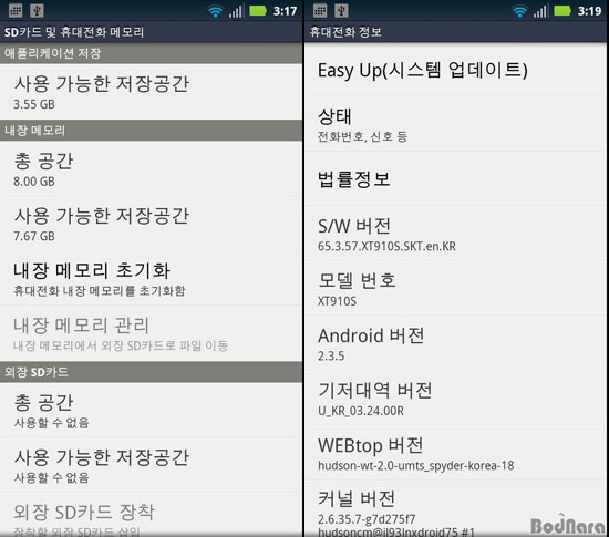 ¾ÖÇø®ÄÉÀÌ¼Ç ÀúÀå °ø°£À¸·Î »ç¿ë °¡´ÉÇÑ °ø°£ÀÌ ¾à 3.55GB¸¦ Â÷ÁöÇÏ°í ³»Àå ¸Þ¸ð¸®·Î´Â 8GB ¿ë·®À» ¾µ ¼ö ÀÖ´Ù. 4.5GB Á¤µµÀÇ °ø°£Àº ¾Èµå·ÎÀ̵å OS ¿Ü¿¡ À¥Åé ¾ÖÇø®ÄÉÀ̼ÇÀÌ Â÷ÁöÇϰí ÀÖ´Ù. ³»Àå ¸Þ¸ð¸® ¿Ü¿¡µµ Ãø¸é microSD ¿ÜÀå ¸Þ¸ð¸® ½½·Ô¿¡ microSD ¸Þ¸ð¸® Ä«µå¸¦ Ãß°¡·Î ÀåÂøÇÒ ¼ö ÀÖÀ¸¸ç, ÃÖ´ë 32GBÀÇ microSD Ä«µå¸¦ Áö¿øÇÑ´Ù.