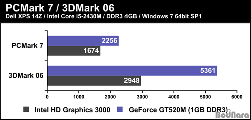 ½Ã½ºÅÛÀÇ Àü¹ÝÀûÀÎ ¼º´ÉÀ» »ìÆìº¼ ¼ö ÀÖ´Â PCMark 7ÀÇ Å×½ºÆ® °á°ú¸¦ »ìÆìº¸¸é ³»Àå ±×·¡ÇÈ (ÀÎÅÚ HD Graphics 3000) »ç¿ë½Ã¿Í ¿ÜÀå ±×·¡ÇÈ(ÁöÆ÷½º GT520M) »ç¿ë½Ã °£¿¡ ¿¹»óº¸´Ù Å« Â÷À̸¦ º¸ÀÌÁö ¾Ê´Â´Ù.
