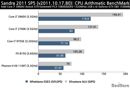 ÇÁ·Î¼¼¼ÀÎ ÄÚ¾î i7 3960X°¡ Á¦ÀÏ ¿ì¼öÇÑ ¼º´ÉÀ» Á¦°øÇÑ´Ù´Â °ÍÀ» È®ÀÎÇÒ ¼ö Àִµ¥, ÀÌ´Â ¾ÆÅ°ÅØÃ³ÀÇ °³¼±°ú ´õºÒ¾î ÄÚ¾î i7 2700K ¹× ÄÚ¾î i7 975XEº¸´Ù Äھ 2°³ ´õ ¸¹Àº Çí»ç ÄÚ¾î(6 ÄÚ¾î)ÀÎ Á¡°ú ÇÏÀÌÆÛ½º·¹µù(Hyper-Threaing) ±â¼ú·Î 12 ½º·¹µå±îÁö Áö¿øÇÏ°Ô µÇ¾ú±â ¶§¹®ÀÌ´Ù.