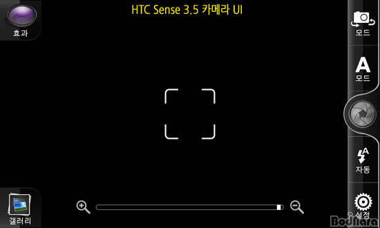 HTC Sense 3.0 Ä«¸Þ¶ó UI´Â ÁÂÃø¿¡ Ä«¸Þ¶ó ÁÜ(Zoom), ¿ìÃø Áß¾Ó¿¡ ¼ÅÅÍ ¹öư°ú À§¾Æ·¡·Î 4°³ÀÇ ±âº» ¹öưÀ» ¹è¿ÇßÀ¸³ª, ¼¾¼¼ÀÌ¼Ç XLÀÇ Sense 3.5 Ä«¸Þ¶ó UI´Â ÁÜ ·¹¹ö¸¦ ȸé ÇÏ´ÜÀ¸·Î ¿Å±â°í ÁÂÃø¿¡ Ä«¸Þ¶ó È¿°ú ¹× °¶·¯¸® ±â´ÉÀ» Àû¿ëÇØ ¿ìÃø ¸Þ´º¿¡ º¸´Ù ¸¹Àº Ä«¸Þ¶ó ±â´É ¹èÄ¡°¡ °¡´ÉÇØÁ³´Ù.