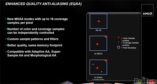 Æ®¸®´ÏƼ¿¡ žÀçµÈ ¶óµ¥¿Â HD 7000 ½Ã¸®Áî ³»Àå ±×·¡ÇÈÀº VLIW4 ¾ÆÅ°ÅØÃ³¸¦ Àû¿ëÇØ ¶óµ¥¿Â HD 6900 ½Ã¸®Áî°¡ Áö¿øÇÑ »õ·Î¿î MSAA ¸ðµå¿¡ Çȼ¿ ´ç ÃÖ´ë 16 Ä¿¹ö¸®Áö »ùÇÃÀ» Ãß°¡ÇØ ¾ÈƼ ¾Ù¸®¾î½ÌÀ» Çâ»óÇÑ EQAA (Enhanced Qulity Anti-Aliasing)À» Áö¿øÇÑ´Ù.