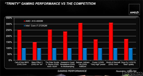 ÀÎÅÚ ÄÚ¾î i7 2720QM°ú A10-4600M Æ®¸®´ÏƼ APU ³»Àå ±×·¡ÇÈÀÇ ¼º´ÉÀº 1366 x 768 ÇØ»óµµ ±âÁØÀ¸·Î °ÔÀÓ¿¡ µû¶ó ÃÖ´ë 3¹è±îÁö Çâ»óµÈ ¼º´ÉÀ» Á¦°øÇÑ´Ù°í ¼Ò°³Çß´Ù.