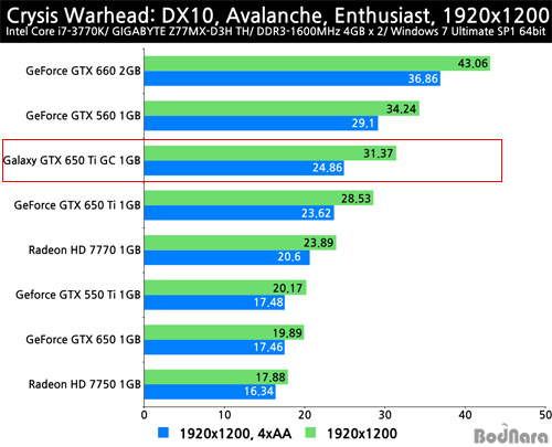 °á°ú °¶·°½Ã ÁöÆ÷½º GTX 650 Ti GC´Â ¸ÞÀνºÆ®¸² ¶óÀξ÷ Á¦Ç° Áß Á¦ÀÏ ¿ì¼öÇÑ ¼º´ÉÀ» ±â·ÏÇÏ¿´À¸¸ç, ·¹ÆÛ·±½º ÁöÆ÷½º GTX 650 Ti¿¡ ºñÇØ AA°¡ Àû¿ëµÇÁö ¾ÊÀº °æ¿ì ¾à 9.1%, 4xAA°¡ Àû¿ëµÈ °æ¿ì ¾à 5% ³ôÀº Á¡¼ö¸¦ ´Þ¼ºÇÏ¿´´Ù.