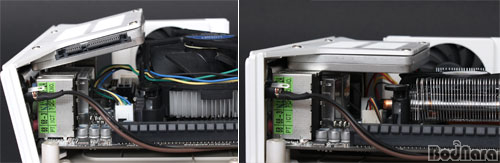¸®Ç÷è NO.1 ÈÀÌÆ®¿Í °°Àº ÃʼÒÇü ¹Ì´Ï PC ÄÉÀ̽ºÀÇ °æ¿ì °ø°£ÀÌ Á¼±â ¶§¹®¿¡ ³»ºÎ Ä𸵿¡ Ưº°È÷ ½Å°æ½áÁà¾ß Çϴµ¥, À̹ø Á¶¸³¿¡ »ç¿ëµÈ ±â°¡¹ÙÀÌÆ® H77N-WiFiÀÇ SATA Æ÷Æ®´Â Äð¸µÆÒ ÂÊ¿¡ À§Ä¡ÇϹǷΠ½ºÅ丮ÁöÀÇ Ä¿³ØÅͰ¡ ¸ÂÀºÆíÀ» ÇâÇϵµ·Ï Çϰí, ±æÀ̰¡ ±ä SATA ÄÉÀ̺íÀ» ¸ÞÀκ¸µå ÇÏ´ÜÀ¸·Î Åë°ú½ÃÄÑ ¿¬°áÇØ ÃÖ´ëÇÑ ¸ÞÀκ¸µå »ó´Ü¿¡ °ø°£À» È®º¸Çß´Ù.