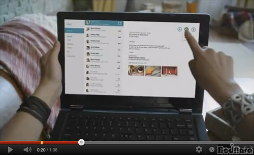 ¸¶ÀÌÅ©·Î¼ÒÇÁÆ®´Â À©µµ¿ì8 ±¤°í¿µ»ó¿¡¼ ³ëÆ®ºÏ¿¡¼µµ ÅÍÄ¡ ½ºÅ©¸°À» »ç¿ëÇÏ¿© À©µµ¿ì8À» »ç¿ëÇϴ ȸéÀ» º¸¿©ÁÖ°í ÀÖ´Ù. ÇØ´ç µ¿¿µ»ó¿¡¼ º¸¿©Áö´Â ¸ðµ¨Àº ·¹³ëº¸°¡ ¼±º¸ÀÎ ¡®·¹³ëº¸ ¿ä°¡'·Î¼ Űº¸µå°¡ µÚ·Î ¿ÏÀüÈ÷ Á¢ÇôÁ®¼ ³ëÆ®ºÏ°ú ÅÂºí¸´PCÀÇ ¸ð½ÀÀ» ¸ðµÎ °®Ãß°í ÀÖ´Ù.