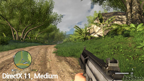 DirectX 9 ¸ðµå¿¡¼´Â MSAA¿Í Alpha to Coverage, SSAO ¼³Á¤ÀÌ È°¼ºÈµÇÁö ¾Ê´Â ¹Ý¸é DirectX 11 ¸ðµå¿¡¼´Â À̵é 3°¡Áö°¡ Ȱ¼ºÈµÇ¸ç ƯÈ÷ ÀÚ¿¬½º·¯¿î ¸í¾ÏÀ» Ç¥ÇöÇÏ´Â SSAO ¹æ¹ý, DX11 Å×¼¿·¹À̼Ç, ¹ÙÀ§ µîÀÇ º¸´Ù ¼¼¹ÐÇÑ ÅØ½ºÃ³ ó¸®, ÀÚ¿¬½º·¯¿î ±×¸²ÀÚ Ç¥Çö µîÀÌ ÀÌ·ç¾îÁø´Ù.