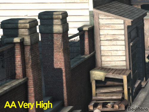 ¾ÈƼ¾Ù¸®¾î½Ì ¹æ¹ýÀº Normal/ High/ Very High/ TXAA¸¦ Áö¿øÇϴµ¥ ¾î½Ø½ÅÅ©¸®µå 3ÀÇ ÁÖ¿ä ¹è°æÀÌ µÇ´Â º¸½ºÅÏÀº ¾È°³¿Í ºñ°¡ ÀÚÁÖ ³»¸®°í ¸¼Àº ³¯¿¡µµ ¾È°³°¡ ³¢¾î ½Ã¾ß°¡ Èå·ÁÁö´Â ÀÏÀÌ ¸¹¾Æ ±ÙÁ¢ÇÏÁö ¾ÊÀ» °æ¿ì ¾ÈƼ¾Ù¸®¾î½Ì ¿É¼Ç¿¡ µû¸¥ Â÷À̸¦ ½±°Ô ±¸ºÐÇÏ±â ¾î·Æ´Ù. TXAA´Â ÁöÆ÷½º 600 ½Ã¸®Á Áö¿øÇϰí ÀÖÀ¸³ª À̵¿½Ã °Ç¹°ÀÇ Ã¢°¡ µîÀÇ ¾Ù¸®¾î½Ì Á¦°Å°¡ ´Ù¸¥ ¾ÈƼ¾Ù¸®¾î½Ì ±â¼úº¸´Ù À¯¸®ÇØ À¯¿ëÇÏ°Ô È°¿ëÇÒ ¼ö ÀÖ´Ù.
