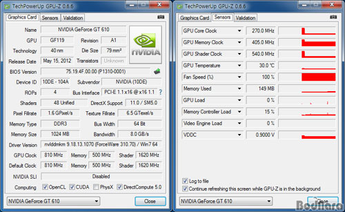 ÁöÆ÷½º GT 610Àº ±âÁ¸ Æä¸£¹Ì (Fermi) ¹× ÄÉÇ÷¯ (Kepler) ¾ÆÅ°ÅØÃ³ ±â¹Ý ÁöÆ÷½º 500/ 600 ½Ã¸®Áî¿Í °°ÀÌ ¾ÆÀ̵é½Ã Ŭ·° ½ºÀ§ÄªÀ» Áö¿øÇØ ¾ÆÀÌµé µ¿À۽à Àü·Â ¼Ò¸ð¸¦ ÁÙÀδÙ. GPU-Z 0.6.6¿¡¼ È®ÀÎµÈ À߸¸ ÁöÆ÷½º GT 610 VF600Àº ÄÚ¾î 810/ ¸Þ¸ð¸® 1000 (500)MHz·Î µ¿ÀÛÇÑ´Ù.