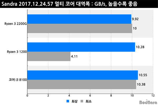 º¸ÀÌ´Â °Í°ú ´Þ¸®, ´ÜÀÏ CCX ±¸Á¶ÀÎ ¶óÀÌÁ¨ 3 2200G´Â Äھ ´ë¿ªÆøÀÇ ÃÖ´ë/ ÃÖ¼Ò°ªÀÌ °ÅÀÇ µ¿ÀÏÇÑ °ÍÀ» ¾Ë ¼ö