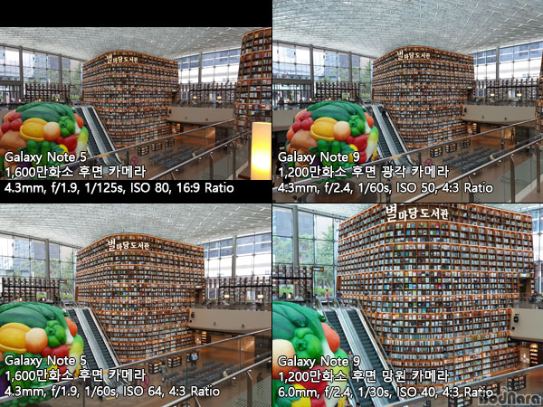 °¶·°½Ã ³ëÆ®5¿Í ³ëÆ®9ÀÇ È°¢À» ºñ±³Çغ¸¸é °¶·°½Ã ³ëÆ®9Àº 1,200¸¸ È¼Ò µà¾ó Ä«¸Þ¶ó·Î ±¤°¢°ú 2¹è ¸Á¿ø ÃÔ¿µÀ»