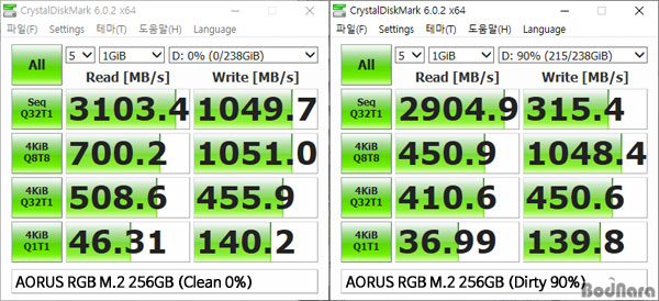 AORUS RGB M.2 NVMe SSD¿¡ µé¾î°£ DDR4 D·¥ ¹öÆÛ È¿°ú¸¦ »« ½ÇÁ¦ ³½µå Ç÷¡½Ã ¾²±â ¼º´ÉÀ» »ìÆìº¸±â À§ÇØ ³ª·¡¿Â ´õƼ