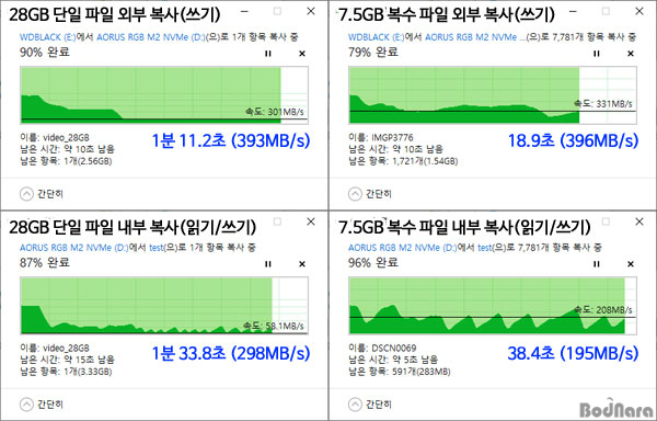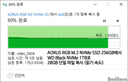 SSD·Î´Â ³ª»ÚÁö ¾Ê´Ù. AORUS RGB M.2 NVMe SSD 256GB¿¡ ÀúÀåÇÑ ÆÄÀÏÀ» ´Ù¸¥ °í¼º´É NVMe M.2 SSD·Î º¹»çÇßÀ» ¶§