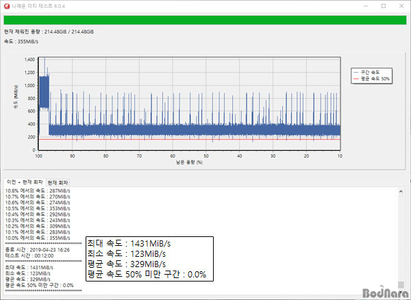 Ãʹݿ¡´Â 1,000MB/s´ëÀÇ ¾²±â ¼Óµµ¸¦ ±â·ÏÇßÁö¸¸ ij½Ã È¿°ú°¡ »ç¶óÁø ÀÌÈÄ¿¡´Â 300MB/s´ëÀÇ Æò±Õ ¾²±â ¼Óµµ¸¦ ±â·ÏÇÑ °ÍÀ¸·Î