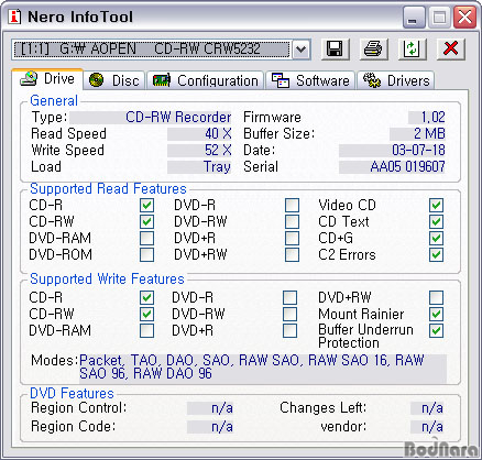 µ¿¾È ´©¸£°í Àִ´Ù) ÃÖ´ë ¼Óµµ 52x·Î °¡¼Ó½ÃŰ´Â ±â´ÉÀÌ´Ù. Nero InfoTool·Î È®ÀÎÇØº¸¾Æµµ ±âº»ÀûÀ¸·Î 40X·Î ÀνĵǾú´Ù°¡