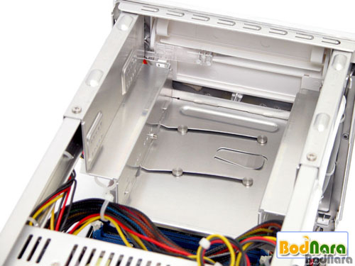 3.5" º£ÀÌ 1°³°¡ ÀÖÀ¸¸ç, ³»ºÎ¿¡ ¼û°ÜÁø 3.5" º£À̰¡ Çϳª ´õ ÀÖ¾î ÀÌ ³»ºÎ º£ÀÌ¿¡ ÇÏµå µð½ºÅ©¸¦ ´Þ ¼ö ÀÖ´Ù.