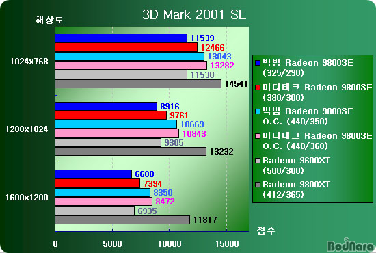 7. ºÎ·Ï: Radeon 9800SE °³Á¶/¿À¹ö¿¡ µû¸¥ ¼º´Éº¯È­ ºñ±³