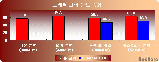 ¡ã ±âº» Äð·¯¿Í VGA Silencer Rev.3¸¦ »ç¿ëÇßÀ» ¶§´Â ÄÚ¾î ¿Âµµ¸¦ ÃøÁ¤ÇÑ °ÍÀÌ´Ù. ±âº» Ä𷯸¦ »ç¿ëÇßÀ» °æ¿ì´Â ¿À¹ö Çѵµµµ ³·¾ÆÁú »Ó´õ·¯ Àå½Ã°£ »ç¿ë½Ã È­¸é±úÁü Çö»óÀÌ ¹ß»ýÇØ °³Á¶³ª ¿À¹öŬ·°À» ÇÏ¿© »ç¿ëÇÒ À¯Àú´Â ±âº» Äð·¯ ´ë½Å º°µµÀÇ ¹æ¿­ ´ëÃ¥ÀÌ ¹Ýµå½Ã ÇÊ¿äÇÏ´Ù.