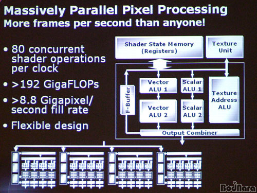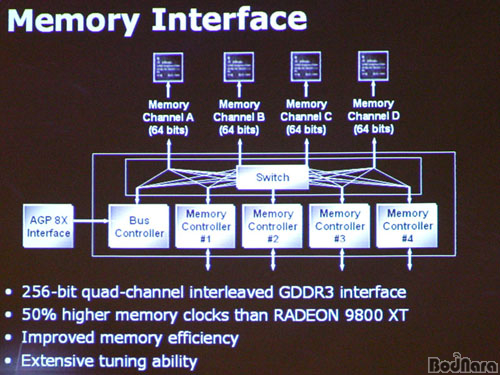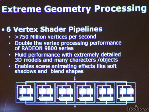 256bitÀÇ ¸Þ¸ð¸® ÀÎÅÍÆäÀ̽º, Radeon 9800XTÀÇ µÎ¹èÀÇ Ã³¸®¼Óµµ¸¦ °¡Áö°Ô µÇ´Â 6°³ÀÇ ¹öÅØ½º¼ÎÀÌ´õ ÆÄÀÌÇÁ¶óÀÎ,